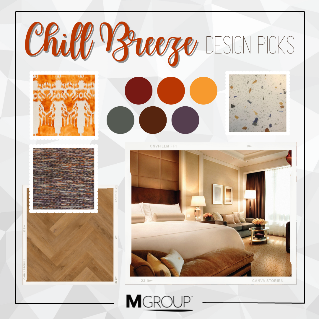 October welcomes the start of a new season and brings many of us a refreshing “chill breeze” and appreciation for the leaves changing colors. Our design picks this month are inspired by the natural beauty of autumn colors outdoors. Refresh your space with MGroup™ flooring, rugs, countertops, and furniture.